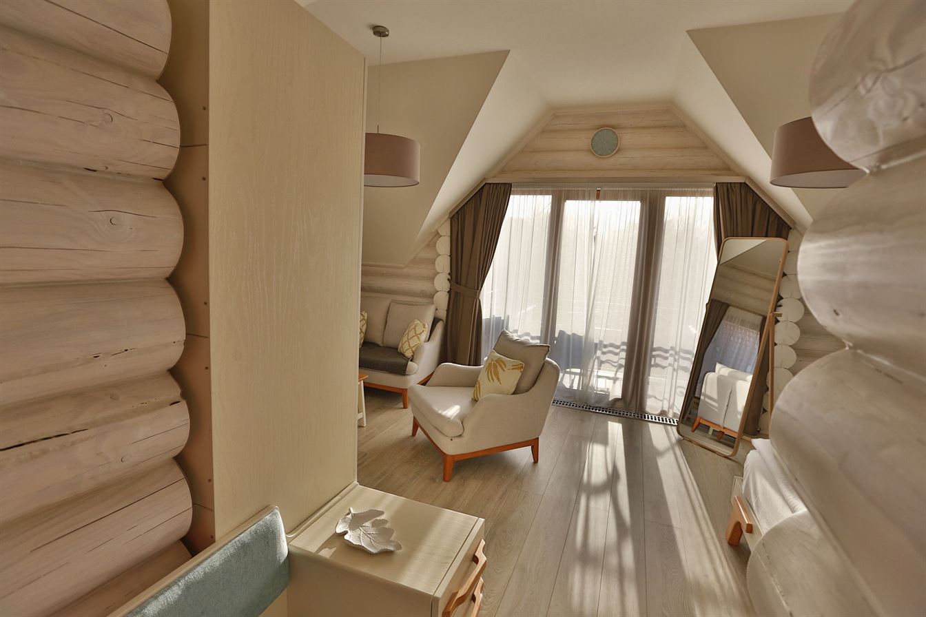 The main feature of our ECO House is its eco-friendly technology. The building is made of Carpathian wood, and the interior walls are painted with breathable paint. The house is located in a green area, next to the classic (main) clinic, just a 1–2 minute walk from the clinic’s main building. This building, adjacent to the Ayurvedic clinic, is solely for accommodation; treatments and other services are available in the Hotel building.